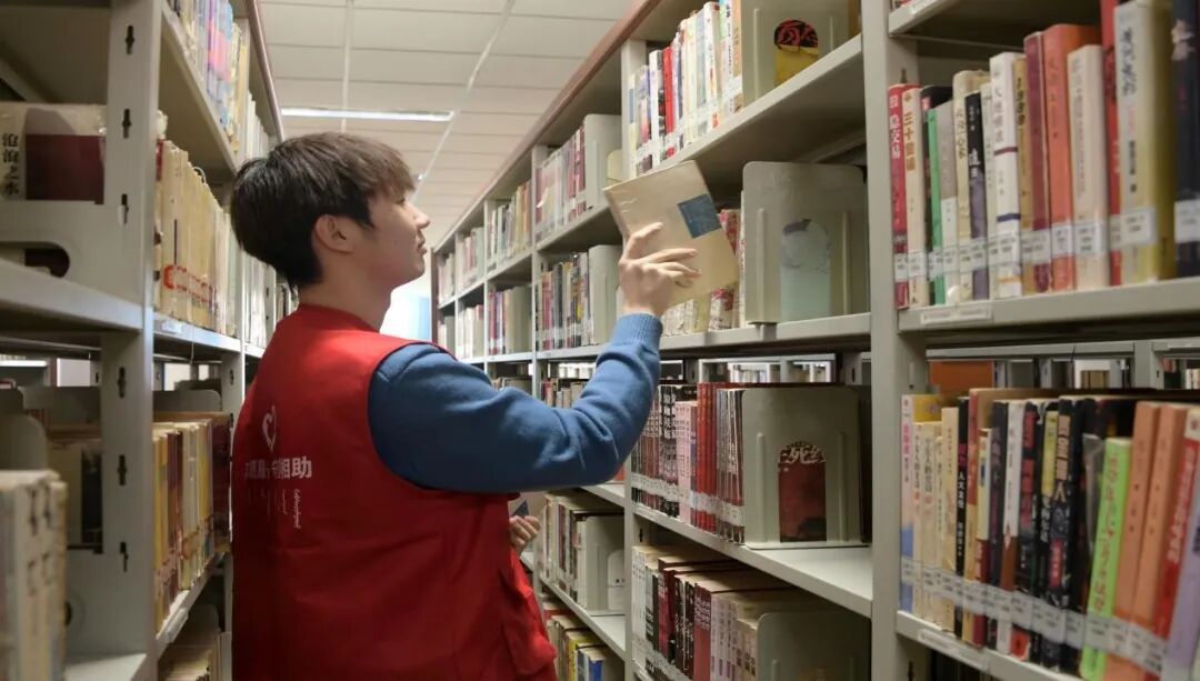 组织学生志愿者走进图书馆,开展了一场以清洁书架为主的志愿服务活动。