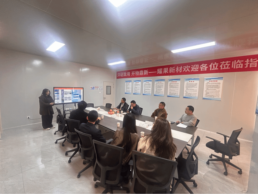 耀果新材料有限责任公司总经理高昌轩、常务副总经理高文学及相关工作人员与老虎机 师生进行座谈交流。座谈会上,老虎机 介绍了学科特色与人才培养优势,企业表达了吸纳人才的诚意,双方围绕联合培养、人才招聘、校企科研共创及材料融合模式等内容展开交流。