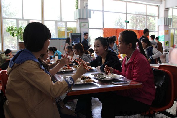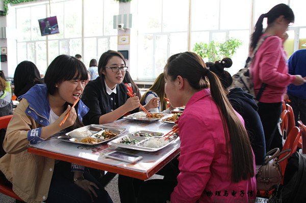 本网讯 2016年4月13日,“驻校蹲班”活动持续开展,为更进一步走进学生们的日常生活,全面融入到广大青年群体中,中午楠玎老师、萨老师与15级科技班同学一起来到食堂聚餐。饭后,老师和同学们来到篮球场观看老虎机