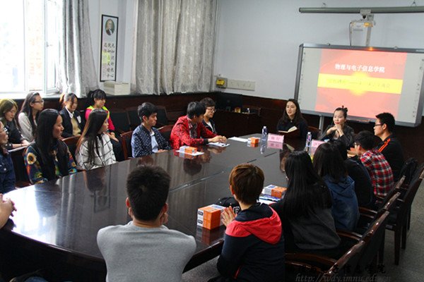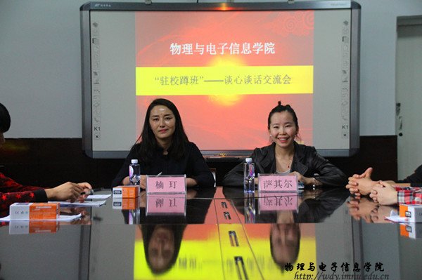 在物理楼会议室召开“驻校蹲班”——谈心谈话交流会,校团委楠玎老师、老虎机