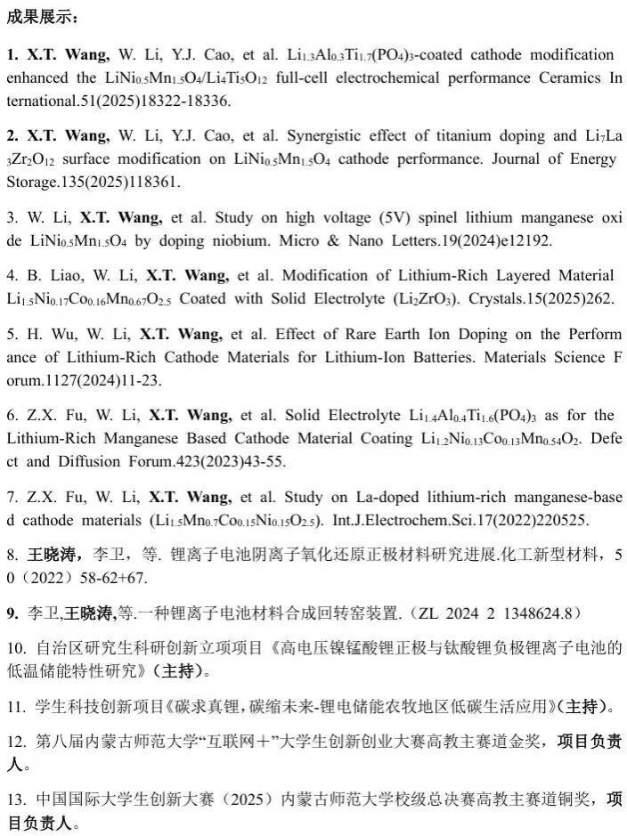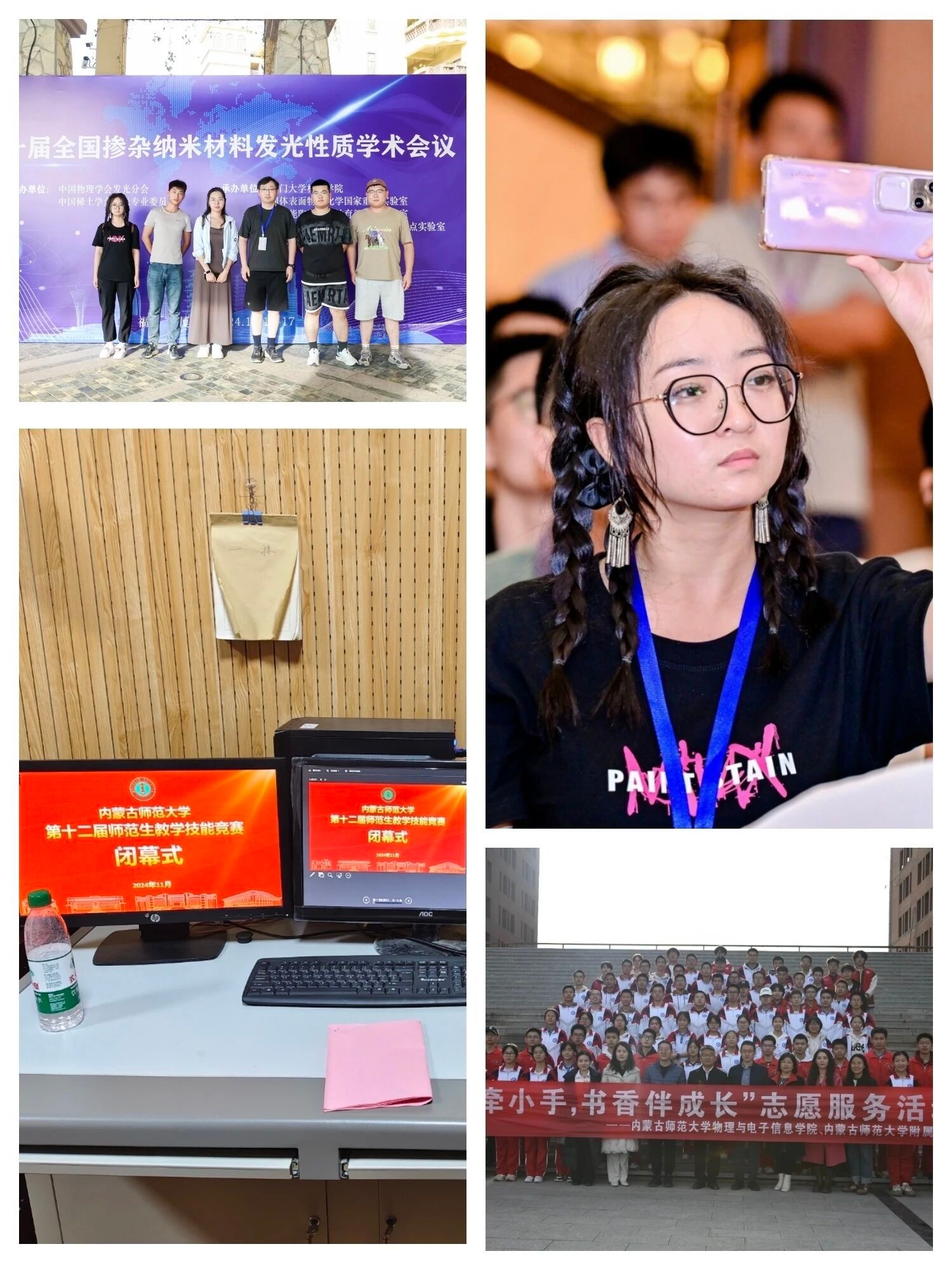 我的大学求学之路始于内蒙古师范大学,现已成长为一名博士三年级的学生。十年间,学校为我提供了丰富的学术资源和先进的科研平台,这让我在科研的道路上不断积累经验,取得了可喜的成果。这段求学经历让我深刻认识到,大学不仅是知识的殿堂,更是个人成长的重要阶段。它教会我如何面对挑战、如何在困境中不断突破自我,也让我意识到,只有在坚持与奋斗中,才能走得更远。如今,我仍在这条求知的路上不断前行,未来的路还很长,但我相信,带着学校给予的宝贵资源与知识,我定能在学术和人生的道路上不断前进,创造属于自己的精彩。