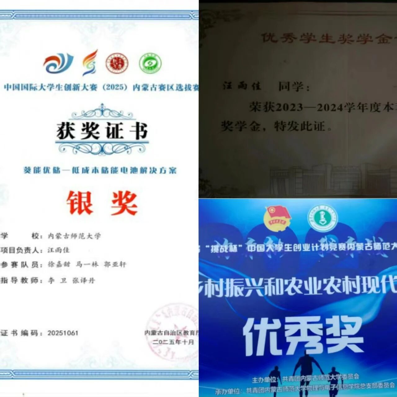 2023学硕班研究生田启旭,我以“勤学、修德、明辨、笃实”为准则坚持全面发展。学术上,我曾两次获得自治区研究生学业奖学金,并在中国国际大学生创新大赛中荣获银奖。以第一作者身份发表SCI二区论文1篇,并积极参加线下学术会议。在社会实践与集体服务方面,积极参与了“大手牵小手,书香伴成长”志愿服务活动,利用自己的专业知识为孩子们带去帮助,传递温暖。此外,还积极组织学术交流活动,促进学术氛围的提升,并在过程中帮助同学解决学业与生活中的困难,践行集体服务精神。未来,我将不忘初心,在博士期间继续深耕稀土发光方向。